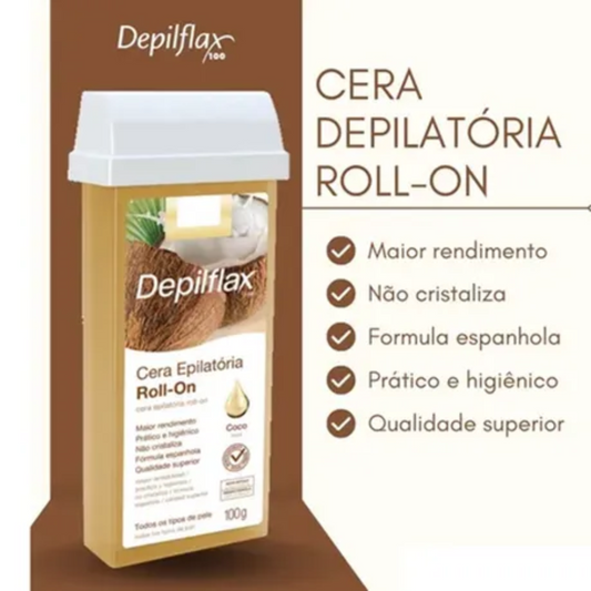 Kit 6 Refil Cera Depilatória Roll On Coco Depilflax 100g