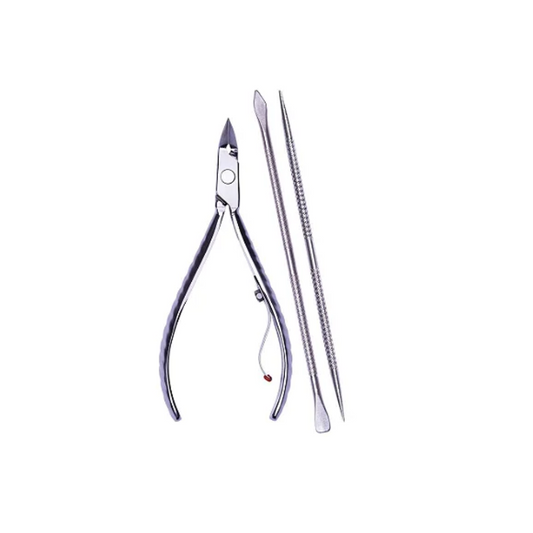 Alicate Para Cutículas Profissional 778 + Espátula + Palito Em Inox Mundial