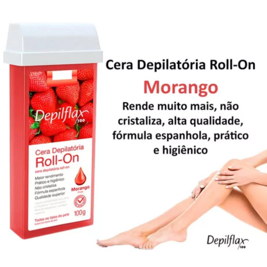 Kit 6 Refil Cera Depilatória Roll On Morango Depilflax 100g