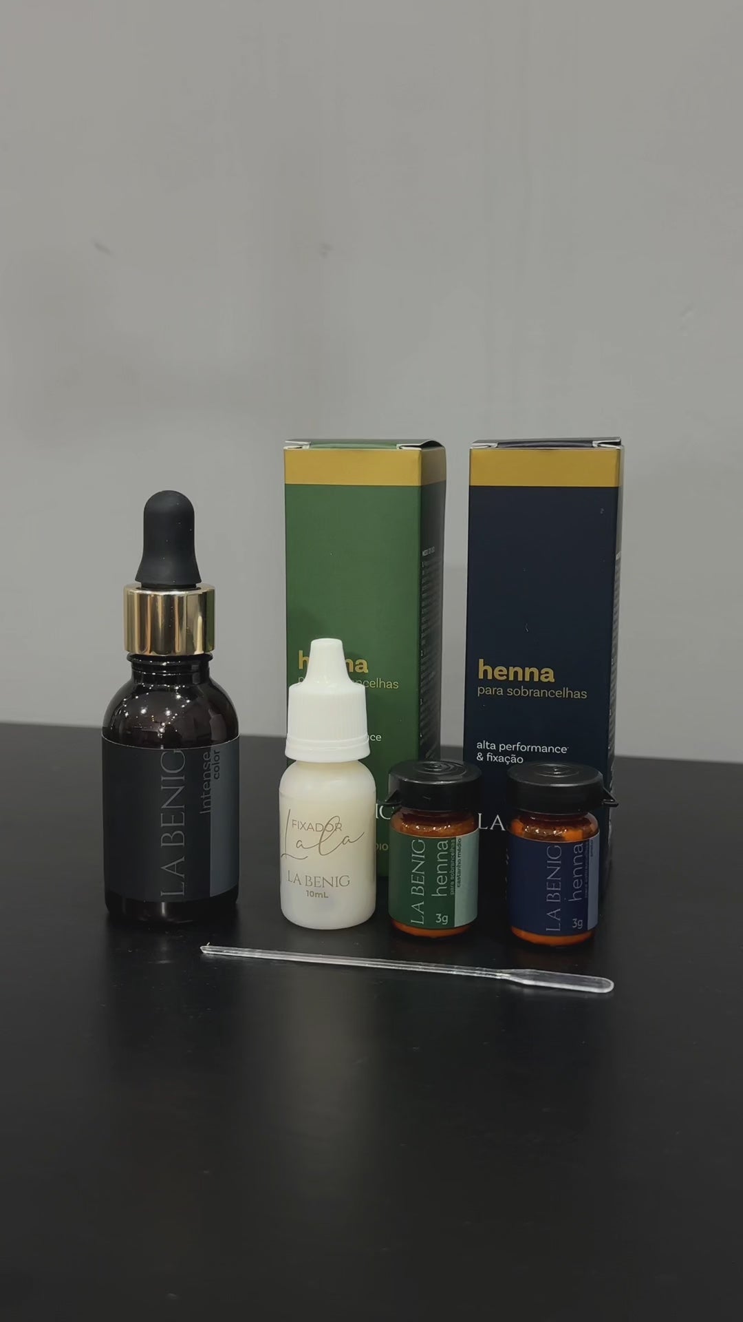 A Henna para sobrancelhas La Benig ressalta a beleza das sobrancelhas proporcionando um aspecto natural e um resultado maravilhoso sem agressão aos pelos e a pele. Ela é dermatologicamente testada, segue todos os critérios da Anvisa e vigilância Sanitária. Com cinco opções de tonalidade abraçando a diversidade de coloração e texturas das peles Brasileiras. Benefícios: Rápida aplicação, Alto poder de pigmentação; Máxima fixação; Brilho intenso; Proteção da cor; Ativos naturais. Cores disponíveis: Castanho Escuro, Castanho Médio, Castanho Claro, Preto e Marrom.