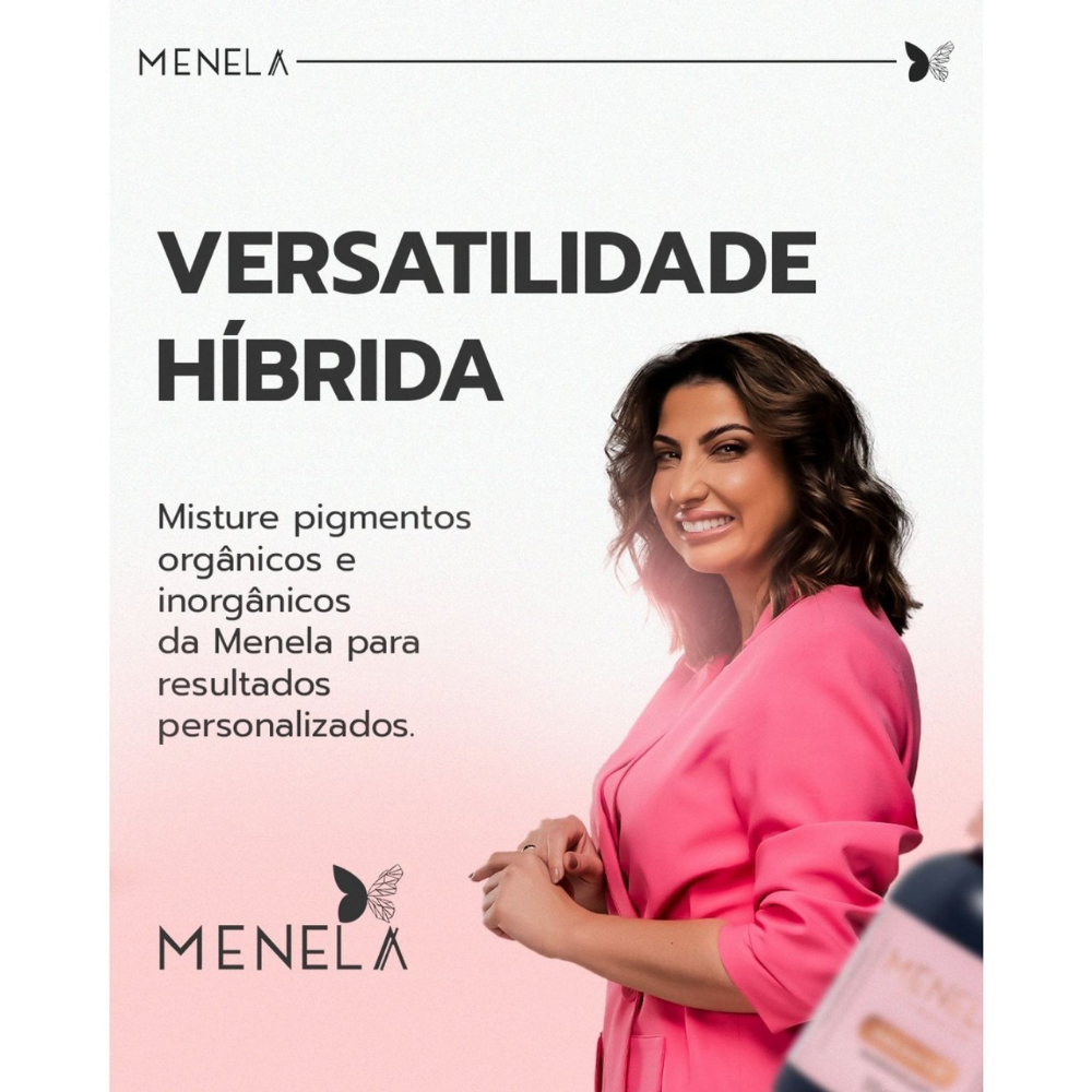 Os pigmentos Menela foram desenvolvidos para oferecer alta performance e excelência em todo o processo de aplicação. Com tecnologia MICRONIZADA, suas partículas passam por um processo rigoroso de moagem, garantindo tamanhos uniformes. Isso possibilita que todas as cores base do marrom (amarelo, vermelho e preto) sejam liberadas simultaneamente, proporcionando um tom uniforme e duradouro.