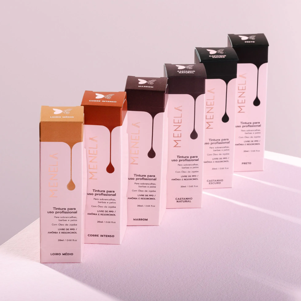 A nova Tintura para Sobrancelhas Menela é sua aliada perfeita para sobrancelhas naturalmente definidas e revitalizadas. Com uma fórmula inovadora enriquecida com Óleo de Jojoba, proporciona nutrição profunda e brilho aos fios enquanto reconstrói e fortalece. Livre de PPD, amônia e resorcinol, é ideal para todos os tipos de pele e pelos, incluindo os mais sensíveis. Diferenciais: Óleo de Jojoba: Nutrição e brilho intenso. Livre de PPD, amônia e resorcinol: Menos agressiva e mais segura. Ação Beauty Repair: Reconstrói e fortalece as sobrancelhas. Cobertura de fios brancos: Acabamento impecável. Vegana e Cruelty-Free: Não testada em animais. Para sobrancelhas, barba e brow lamination. Disponível em 6 tonalidades para fácil identificação da cor. Resultados: Acabamento personalizado: natural, médio ou marcado. Ideal para todos os tipos de pele e pelos. Modo de Uso: 1. Preparação: Limpe a área de aplicação, removendo toda a maquiagem e impurezas; 2. Aplicação: Misture a tintura e o creme oxidante Menela na proporção correta e aplique nos pelos, sobrancelhas ou barba. Deixe agir por 5 a 15 minutos, dependendo do efeito desejado; 3. Cobertura de fios brancos: Use uma mistura mais concentrada e deixe agir por até 15 minutos. Precauções: Realize um teste de toque 72 horas antes da aplicação definitiva. Siga as instruções para evitar irritações ou reações alérgicas.